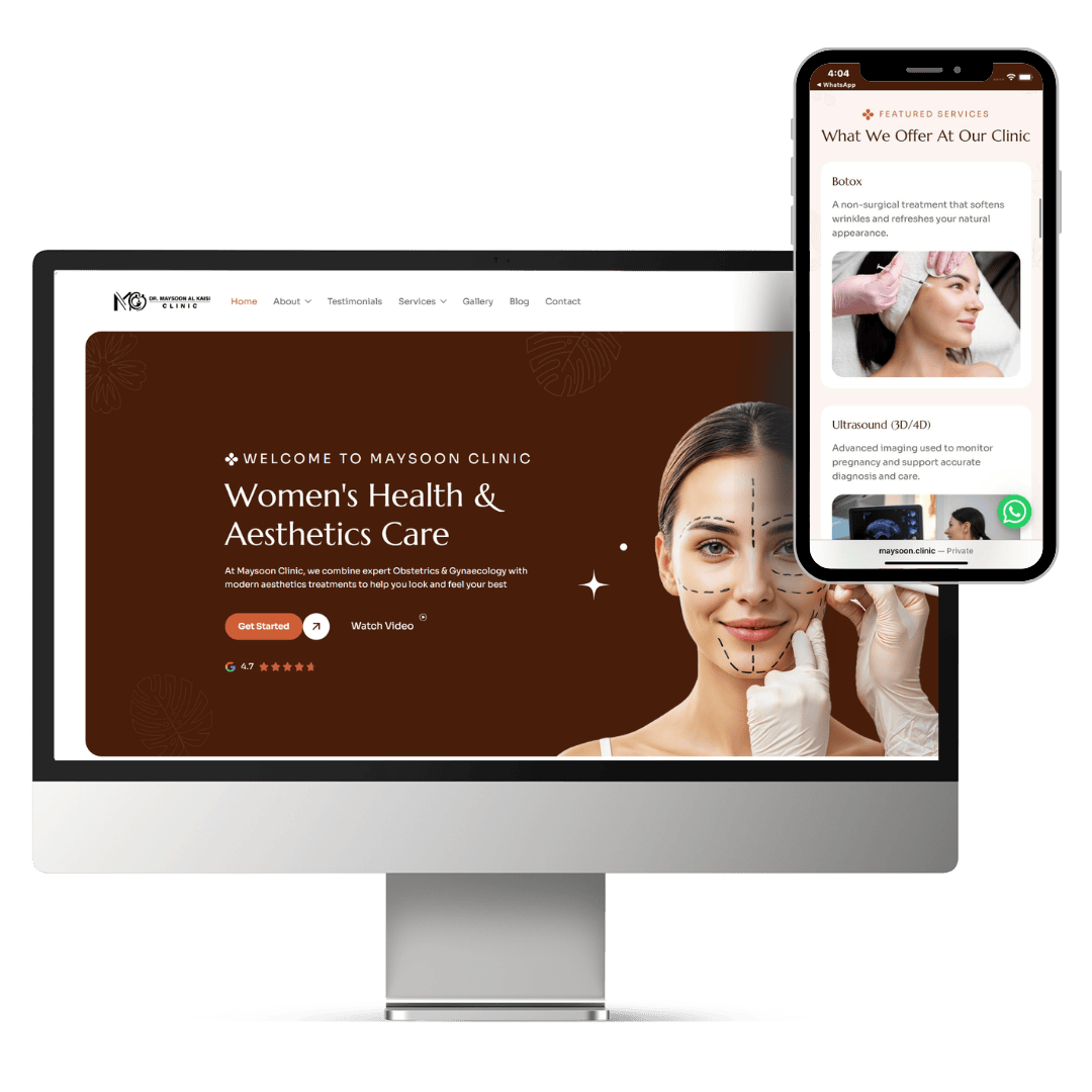 The website for Maysoon Clinic was designed to create a clean and elegant digital presence that reflects the clinic’s focus on beauty, wellness, and professionalism. The structure was developed to clearly present the clinic’s treatments and services while maintaining an intuitive and user friendly navigation experience.