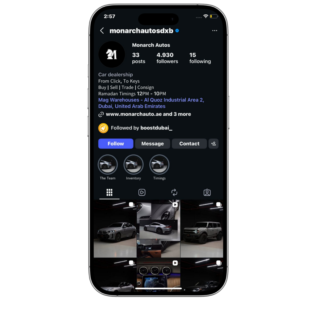 Social media management for Monarch Autos was focused on building a consistent and high impact digital presence. Content was strategically planned, posted, and optimized to showcase the brand’s luxury inventory while maintaining a refined and cohesive aesthetic. Through data driven decisions and platform specific strategies, we increased engagement, strengthened brand positioning, and ensured continuous visibility across key social channels.