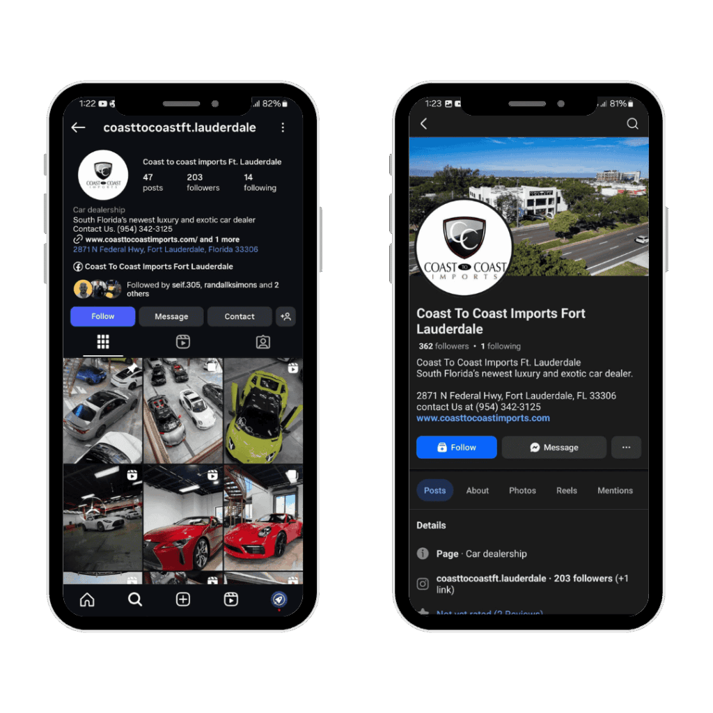 We strategically manage Coast to Coast Imports’ social media presence to ensure every post, story, and interaction aligns with the brand’s premium image. Through thoughtful planning, consistent branding, and audience insight, we maintain an active digital presence that enhances visibility and strengthens customer relationships.